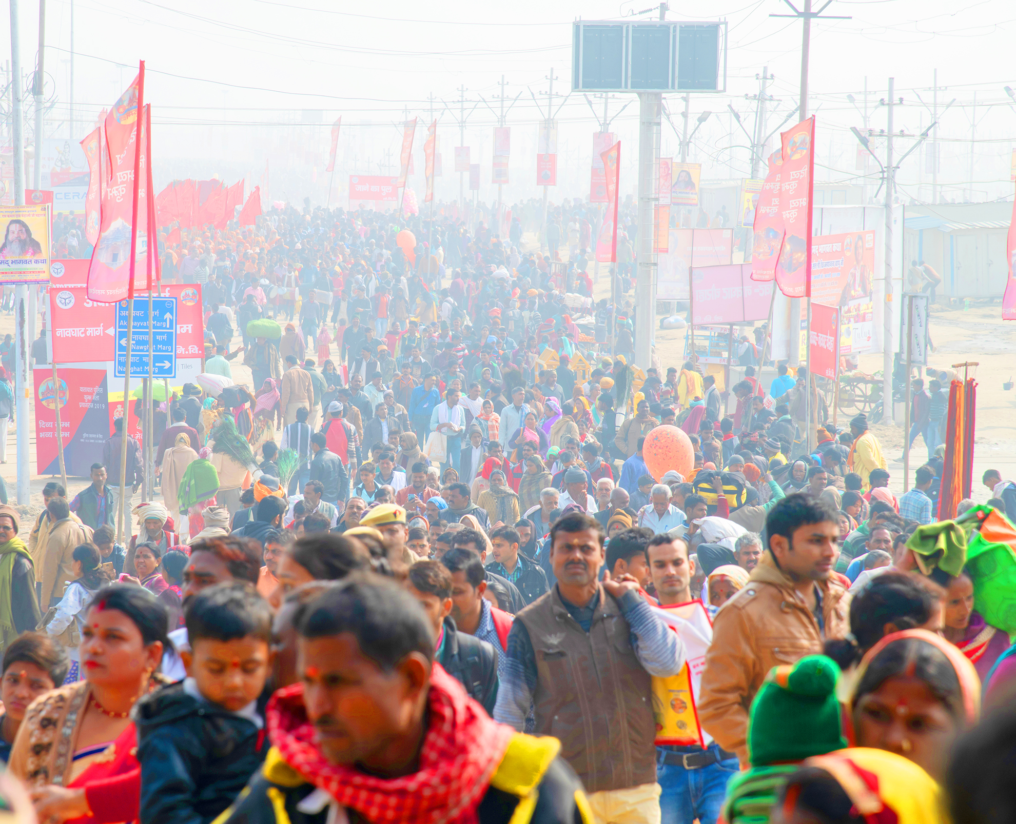 What was the population of India in January 2019? According to the 2011 census, the estimated figure was 132 crores. In 2019, the Kumbh mela, which was held in Prayagraj, between January 15 and March 4, 15 crore Indians had visited the gathering. The figure is equivalent to 11% of the nation's population, who had gathered in a single city, the data showed.”