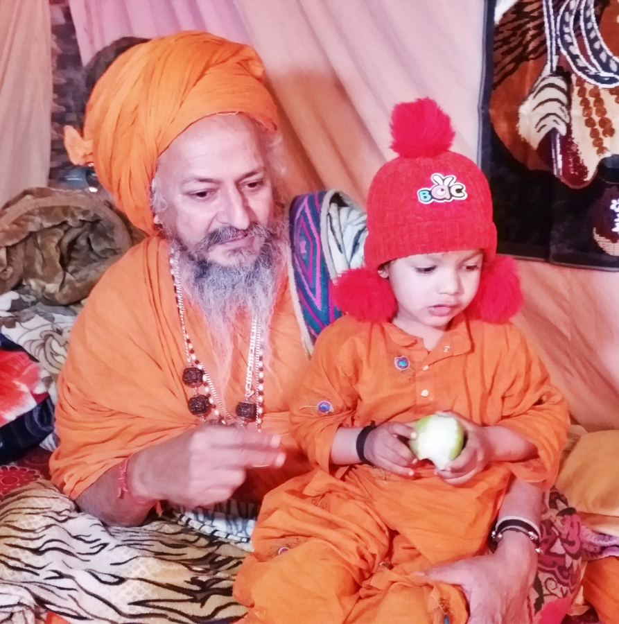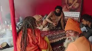Bhagirathi Giri of the Atal Akhara has practiced Khadeshwari tapasya by standing on one leg for three years. Using a swing for support, he sleeps and meditates while maintaining his vow. “I will continue until atrocities against women and terrorism cease,” he said.”